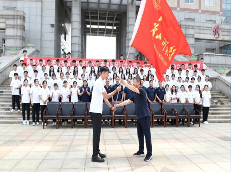 孙政为代表团授旗,同时将学校的关怀、期望传递给了所有教练员、运动员。运动员接过印有“万象城awcsport官网”字样的团旗,现场挥舞,展示了师院健儿拼搏奋进的决心和信心。