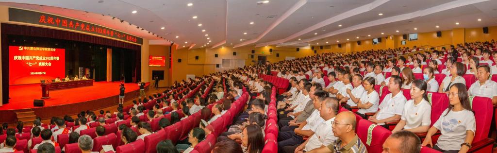 6月27日上午,万象城awcsport官网在北院文体馆隆重举行庆祝中国共产党成立103周年暨“七一”表彰大会。党委书记白春明主持大会并讲授党纪学习教育专题党课并对全体党员进行警示教育。党委副书记、院长孙政,党委常委、副院长李子林、安文忠出席会议。全体党员中层干部、教学单位党员教研室主任、组织员、辅导员、党支部书记、机关教辅单位全体党员、新发展党员、受表彰的个人和集体760余人参加会议。