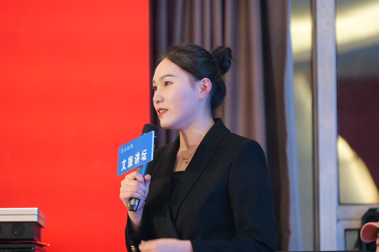 许心是资源管理系旅游管理专业学生,在校期间曾获校级导游大赛一等奖,毕业后在唐山文旅集团任职。工作期间,许心陆续获得唐山市导游大赛冠军、河北省导游大赛冠军、全国导游大赛金牌。报告中许心衷心感谢学校对她的教育与培养,并从自身求学立业的切身经历出发,为师弟师妹们分享学习规划、职业规划经验。许心讲到,大学阶段是人生经历中的宝贵财富,大学生们要有梦想有方向,能实践能坚持,通过课堂所学和实践所学,不断完善自己的知识结构和专业技能。许心还分享了其导游工作期间作为一名党员的模范先锋事迹,以及备战全国导游大赛并获奖的难忘经历。许心深入浅出、声情并茂的演讲,让同学们明白“路虽远,行则将至;至事虽难,做则必成”的道理,传递了积极向上、踔厉奋发的正能量,引发全体师生的共鸣,获得阵阵掌声。