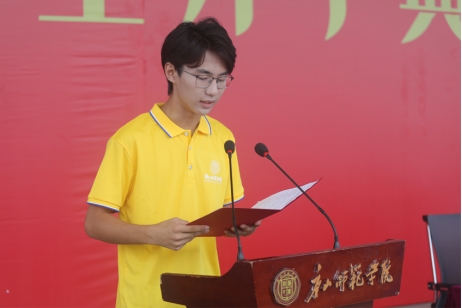 音乐系2023级音乐学一班李世轩、教育学院2023级小学教育专业公费师范生杨子萌代表新生发言。他们表示,全体新同学对即将到来的大学生活充满期待,2023级全体新同学将在这里发愤图强,努力学习,完成从稚嫩到成熟的蜕变,享受真正属于自己的大学校园时光,共同起航人生的新征程。