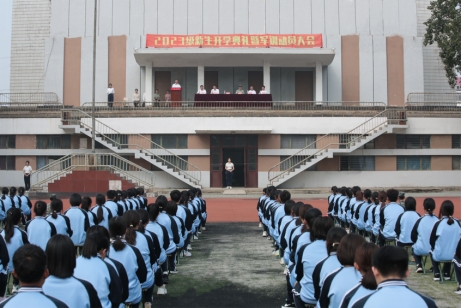 上午8时,在雄壮的国歌声中,五星红旗冉冉升起,开学典礼正式拉开帷幕。副院长杨涛作军训动员讲话,并宣读了军训团建制。