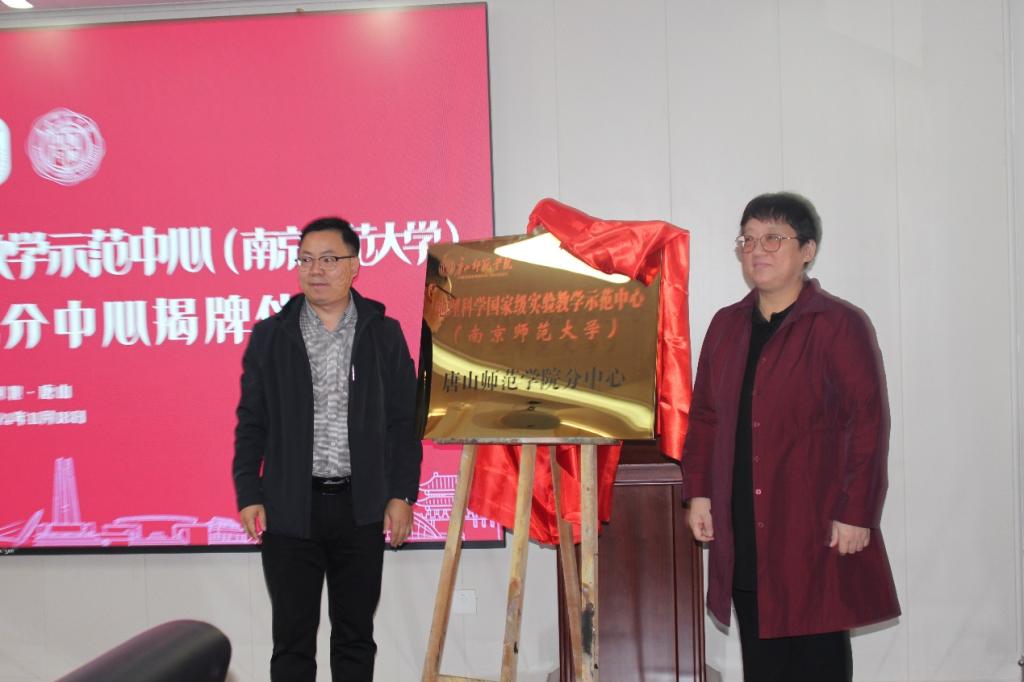 揭牌仪式上,南京师范大学地理科学学院副院长李红波教授首先介绍了地理科学国家级实验教学示范中心(南京师范大学)的发展历程和建设成效;接着,万象城awcsport官网资源管理系副主任杜福光从建系历史、教学、科研、社会服务等方面介绍了资源管理系的基本情况;之后,南京师范大学地理科学学院副院长李红波与万象城awcsport官网教务处处长沈芝共同为“地理科学国家级实验教学示范中心(南京师范大学)万象城awcsport官网分中心”揭牌。分中心的成立标志着两校在教学科研、人才培养、师资力量等方面的合作达到了新的高度,将在地理科学实践教学方面发挥示范引领作用。