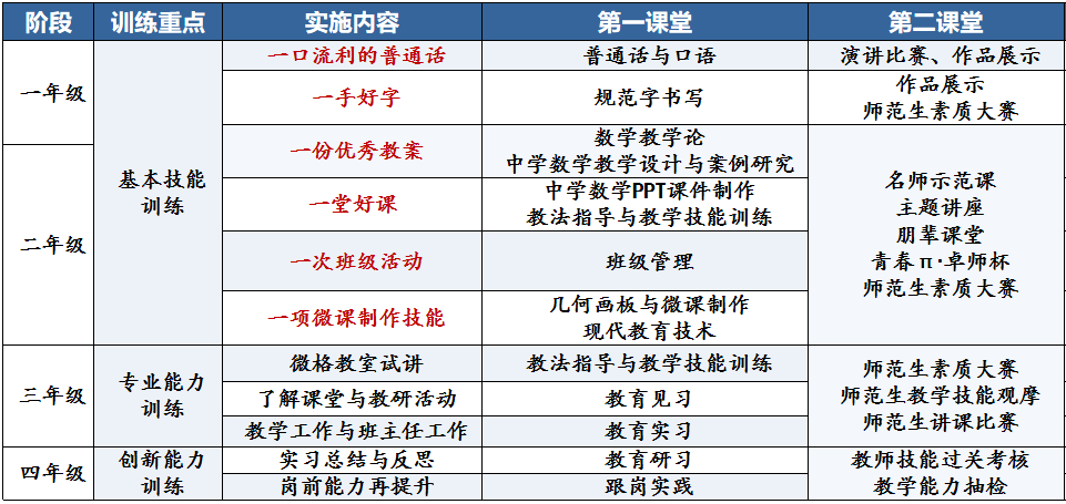 融合第一课堂与第二课堂资源,打造“理论学习+实践体验+榜样引领”的立体化实践平台。定期举办“师德报告会”“名师示范课”,邀请中小学优秀教师、教学名师到校分享经验,组织师范生观摩学习;实施“朋辈计划”,由高年级优秀学生结对指导低年级学生,形成“传帮带”成长氛围;常态化开展“教学技能强化训练”“教学技能过关考核”,每年举办“青春π•卓师杯”师范生素质大赛,覆盖教学设计、模拟授课、课件制作、两笔字、微课制作等核心环节,培养出一批“校级教学能手”。