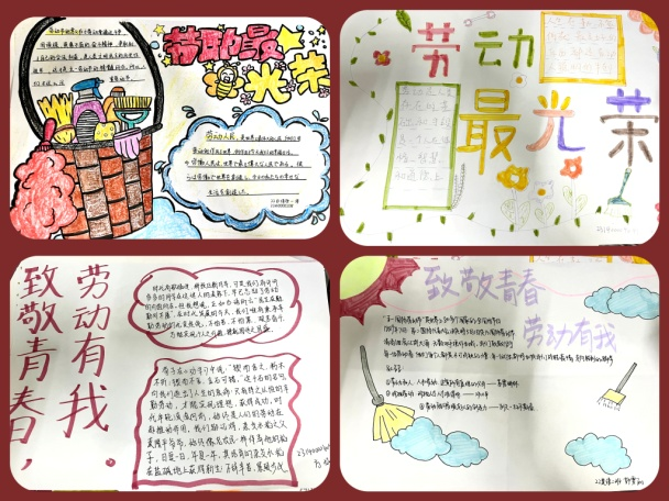 劳动是人类社会的本质活动,人类劳动是价值创造的源泉之一。同学们用五彩的画笔在洁白的画纸上描绘出对劳动的美好憧憬,每一张手抄报都是一个多彩的劳动世界,体现了同学们的创意和巧思。