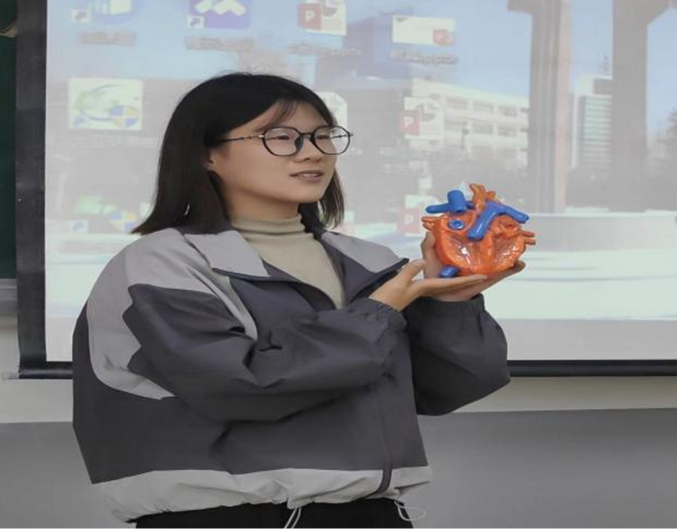 在教具设计比赛中,选手们采用PPT图文并茂的方式,从主体构思、材料选择、制作方法等方面逐一介绍,向评委和现场的观众们充分展示了他们的作品。