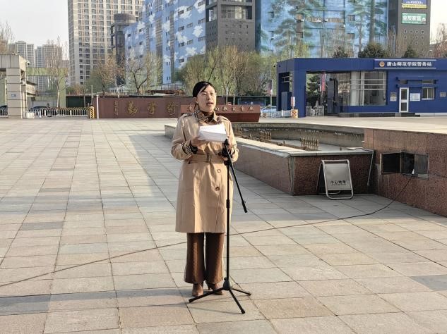 学生代表孙搏扬号召同学们要继承和发扬革命先辈的光荣传统,勇立潮头、奋楫笃行,让青春在全面建设社会主义现代化国家的火热实践中绽放绚丽之花,为实现中华民族伟大复兴的中国梦而努力学习、锐意进取。