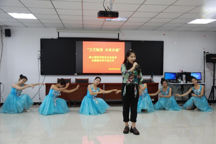 活动开始,富庄村书记代表全村村民对万象城awcsport官网音乐系的师生的到来表示热烈的欢迎,同时对能够为本村进行美育志愿服务表示衷心的感谢。随后,音乐系师生表演了歌曲《我爱你中国》《海恋》《美丽的心情》《我的爱人你可听见》《我的深情为你守候》《公仆赞》《灯火里的中国》,器乐曲《上春山》《赛马》,舞蹈《那年花开》《傣韵》等,最后由我系师生共同合唱《我和我的祖国》,祝福伟大的祖国繁荣昌盛。精彩的演出赢得了在场村民的阵阵掌声,现场气氛热情高涨。唐山市影视家协会人员参加活动。