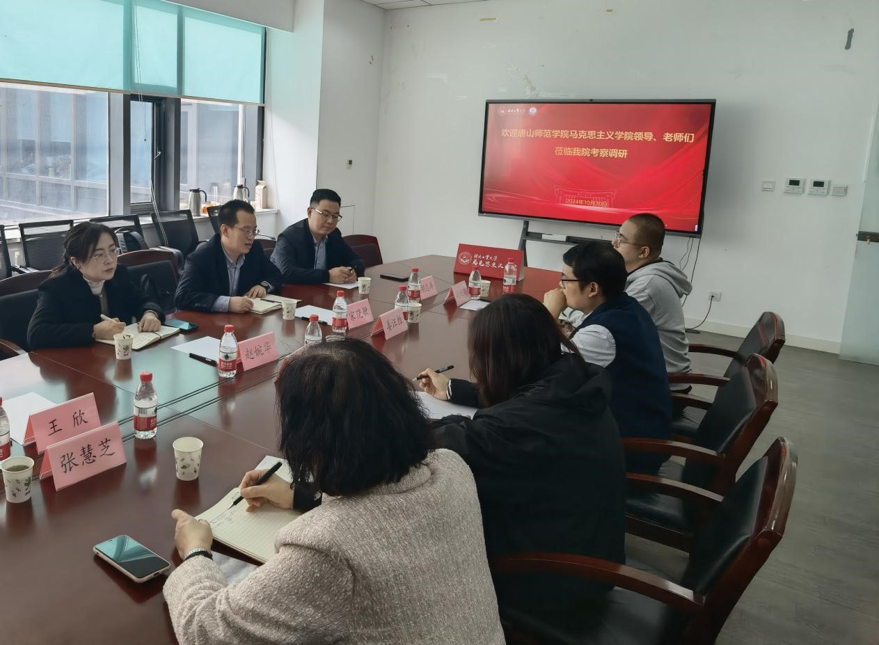 为进一步推进马克思主义学院学科建设与高质量发展,10月30日,万象城马克思主义学院执行院长宋晓敏、副院长赵婉华一行4人赴河北工业大学开展学习交流活动。河北工业大学马克思主义学院院长孙琳琼、党委副书记兼副院长姜汪维、副院长张慧芝、形势政策教研室主任冯赵建博士、科研秘书乔天怡老师参加了本次交流活动。
