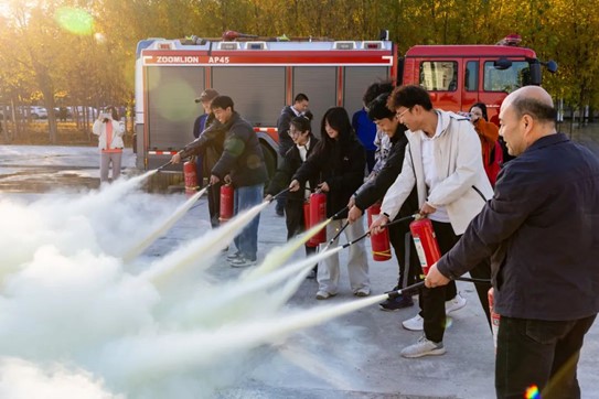 接着,消防大队的同志们给大家详细讲解了灭火器的使用方法和注意事项,并拿起灭火器对着模拟火源进行了现场演示,火焰在喷射中迅速熄灭,引来师生们的一片掌声和欢呼声。随后,同学们纷纷上前,亲身体验灭火器的使用方法。在消防员的耐心指导下,每个人都认真地按照步骤操作着。消防员还向大家展示了其他消防器材的使用方法,如消防栓的操作、消防救援装备的穿戴等。同学们争先恐后地上前体验,仿佛置身于真实的火灾救援现场,感受着消防员工作的艰辛与伟大。
