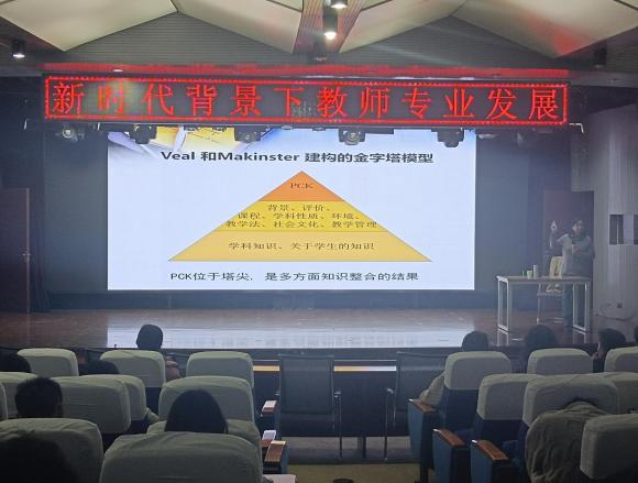 杨教授以经典的单车实验为开端给物理师范生开展“新时代背景下教师专业发展”专题讲座。杨教授对中国基础教育现状进行了分析并指出目前教育面临着诸多问题与挑战,对当今教师应具备的专业素养与精神提出了明确的方向,同时,阐述了教师专业发展的重要性。