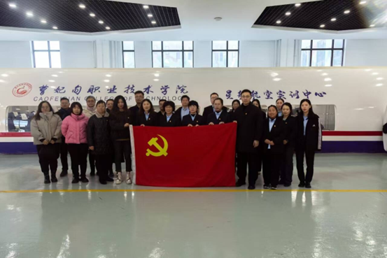 随后,全体党员和学生进入曹妃甸职业技术学院实训室进行参观展览。讲解员围绕课程设置、专业特色,结合实训室的功能、特点及理论实践一体化的教学方式,进行了全面系统地展示。全体党员和学生实地观摩了航空航天、人工智能、工业网络与数字化等实训中心。这里不仅展现了技术的前沿探索,更揭示了新质生产力如何赋能传统产业的转型升级。大家深切感受到技术创新对推动社会进步的巨大力量。