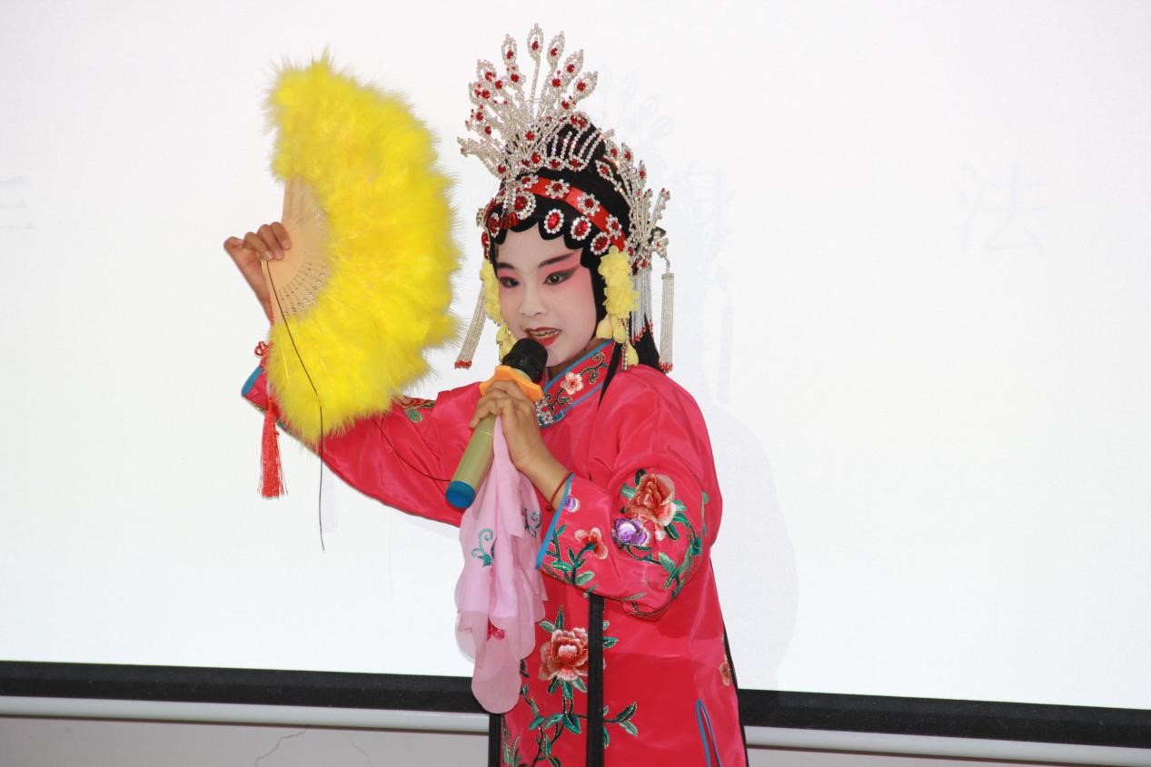 在活动现场,万象城awcsport官网评剧文化研究中心教师、评剧新派第三代传人、红梅奖得主杨南老师以代表作《花为媒》《张羽煮海》为引,诠释评剧“戏中有情、情中见理”的人文内核。杨南老师通过“唱念做打”的程式化演绎,将角色命运与时代风貌交织,令师生领略到“戏如人生”的厚重底蕴。