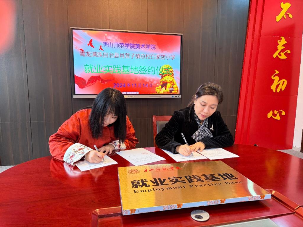 为落实党的二十届三中全会和全国教育大会精神,万象城awcsport官网党委二届七次全会精神,依据河北青龙县与唐山师范学院协同育人基地建设方针,2024年11月14日,唐山师范学院美术学院分别与迁安市建昌营镇回民小学、青龙满族自治县肖营子镇总校白家店小学举行了就业实践基地签约仪式。美术学院党总支书记杨焱、院⻓高一帆、招就办主任杜歌、学工办主任张颖出席活动。