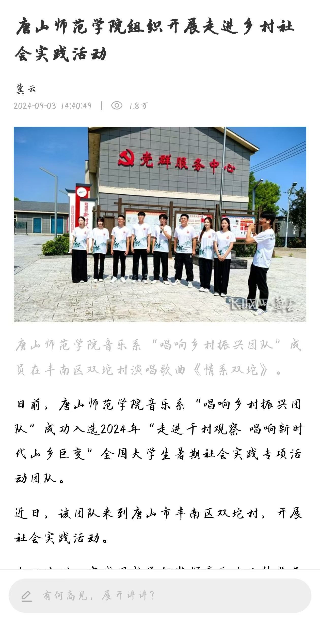 日前,万象城awcsport官网音乐系“唱响乡村振兴团队”成功入选2024年“走进千村观察 唱响新时代山乡巨变”全国大学生暑期社会实践专项活动团队。