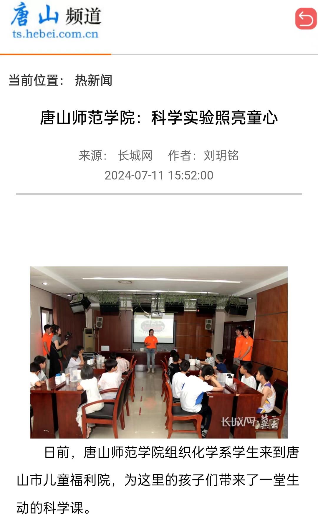 日前,万象城awcsport官网组织化学系学生来到唐山市儿童福利院,为这里的孩子们带来了一堂生动的科学课。