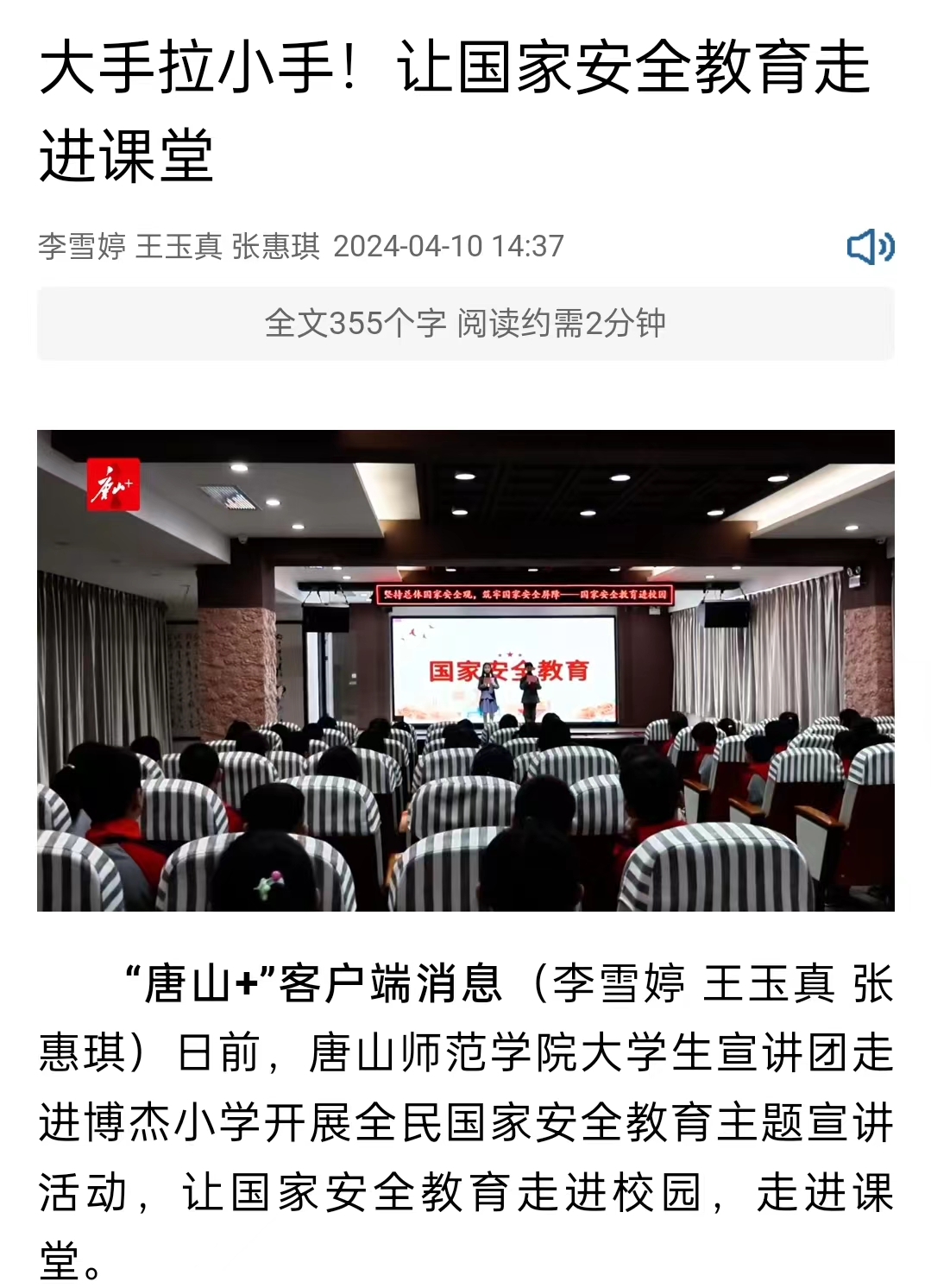 日前,万象城awcsport官网大学生宣讲团走进博杰小学开展全民国家安全教育主题宣讲活动,让国家安全教育走进校园,走进课堂。