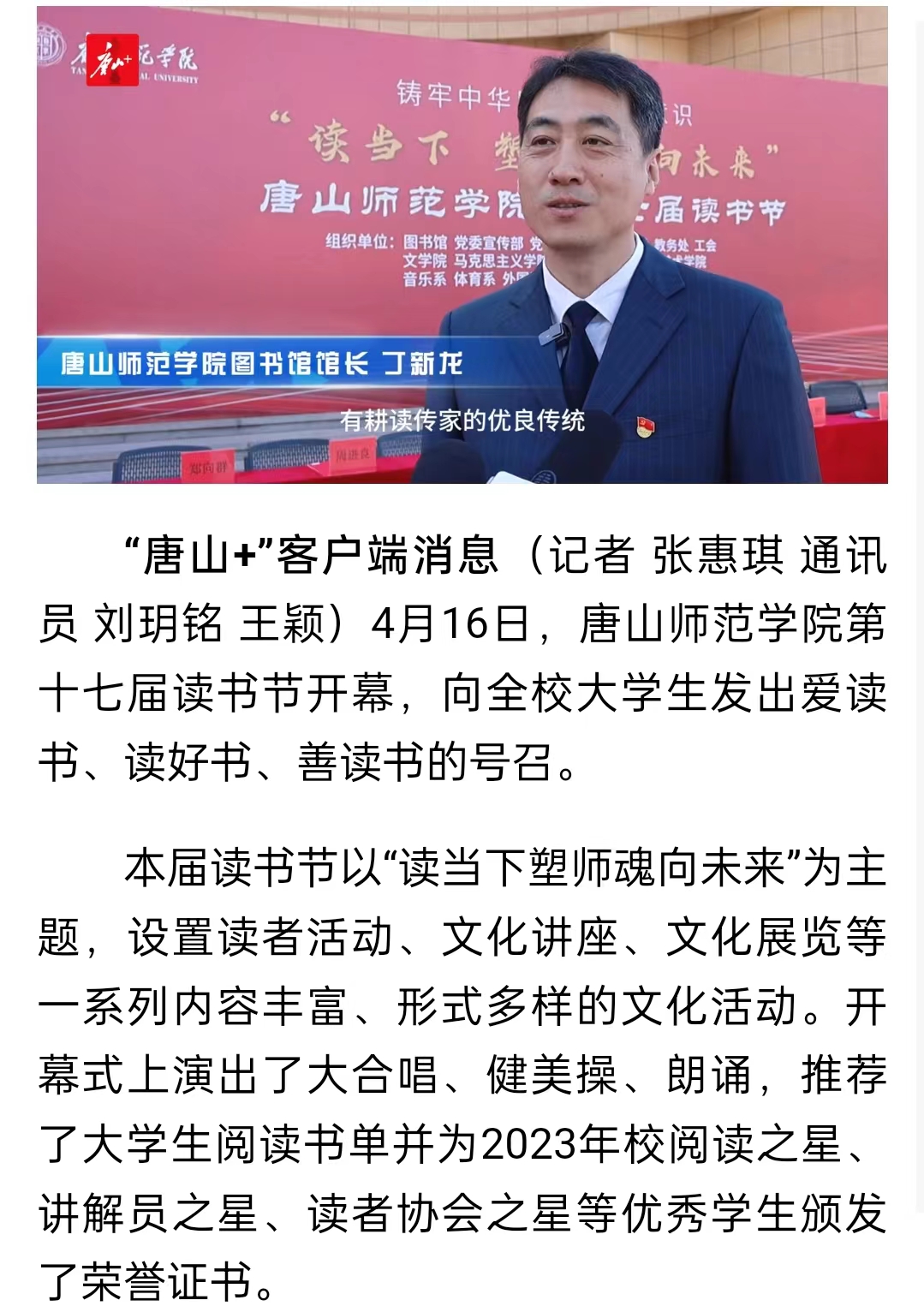 4月16日,万象城awcsport官网第十七届读书节开幕,向全校大学生发出爱读书、读好书、善读书的号召。
