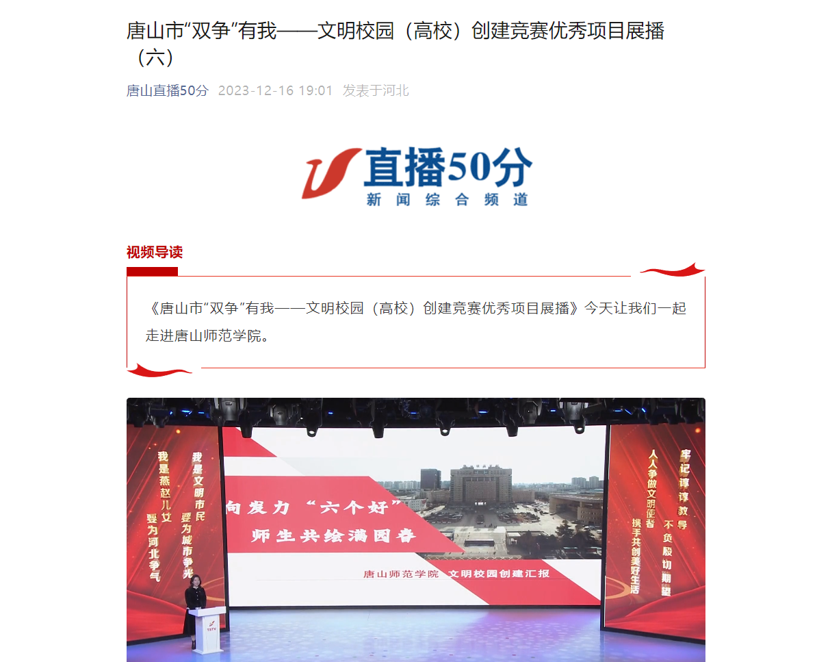 《唐山直播50分》——唐山市“双争”有我——文明校园(高校)创建竞赛优秀项目展播(六)