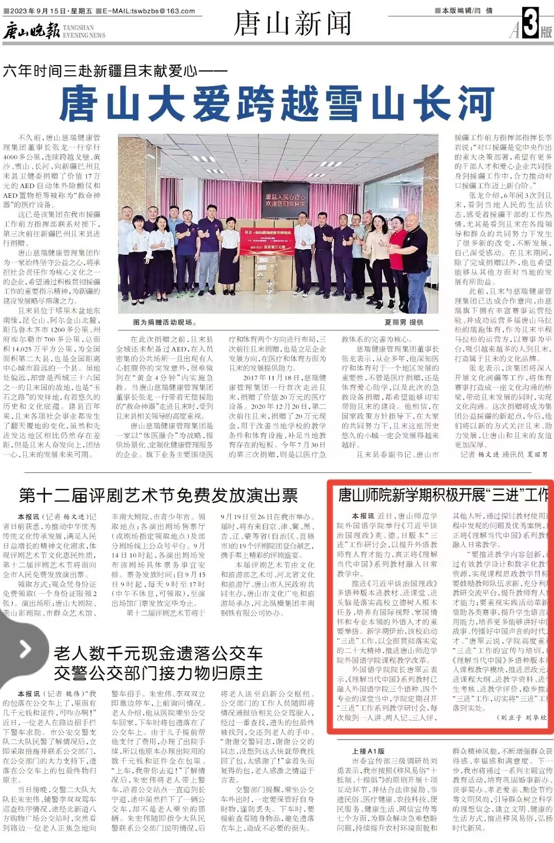 《唐山劳动日报》——唐山师院新学期积极开展“三进”工作