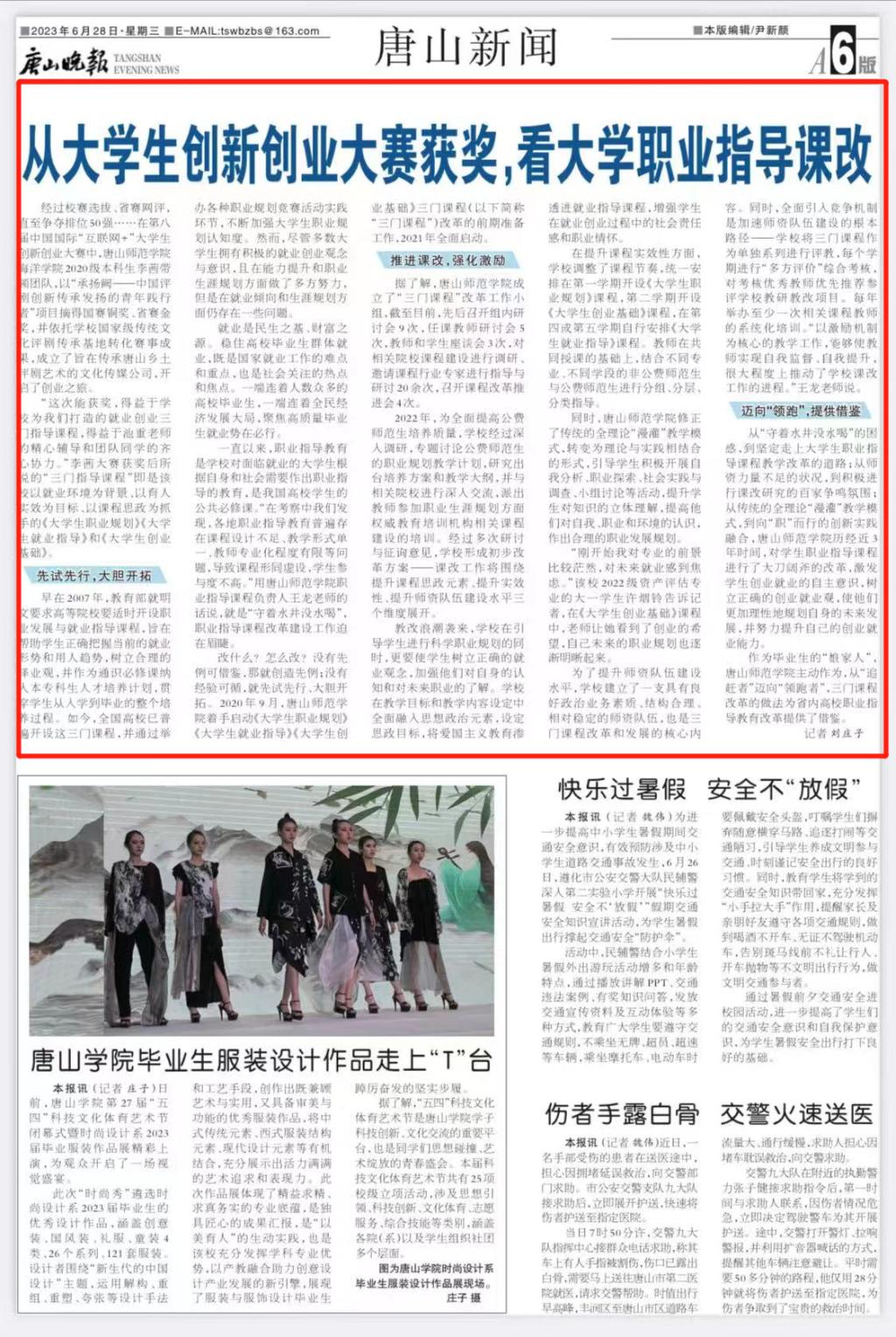 《唐山晚报》——从大学生创新创业大赛获奖,看大学职业指导课改