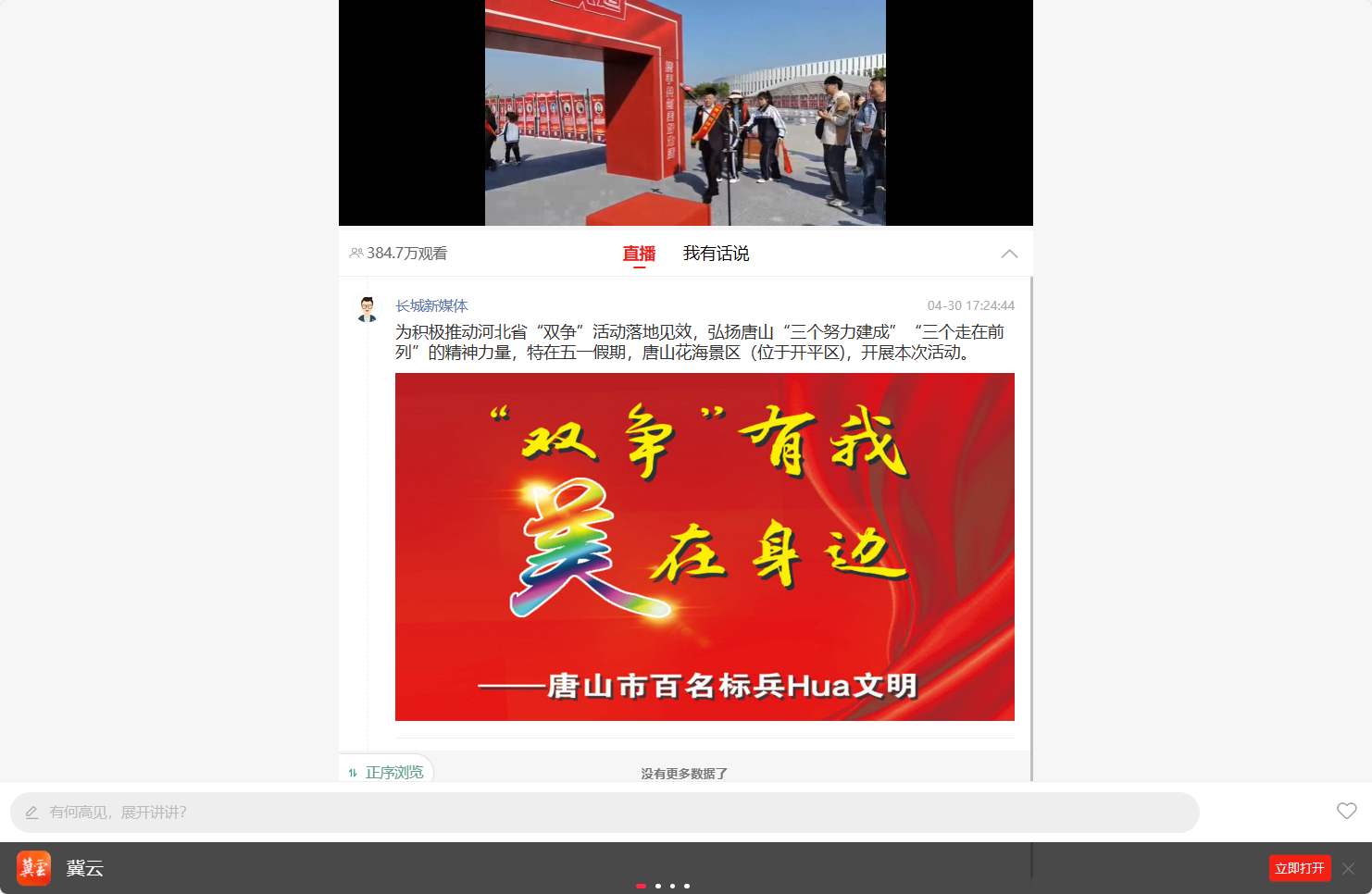 https://jiyun.hebyun.com.cn/live/2023/04/30/6730eaccf9b542dc99d06f322b8891b7.html?shareAppId=d78cdde3a4b0442eb8e4298ca4bc6473&vTime=28069207