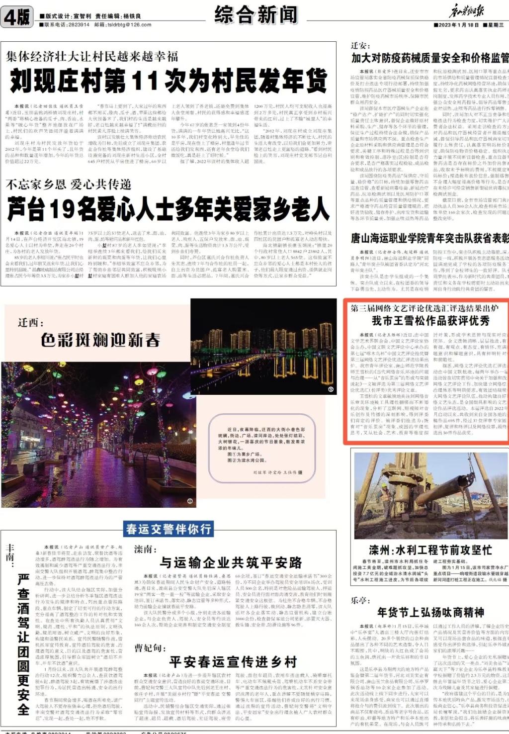 《唐山劳动日报》——第三届网络文艺评论优选汇评选结果出炉我市王雪松作品获评优秀