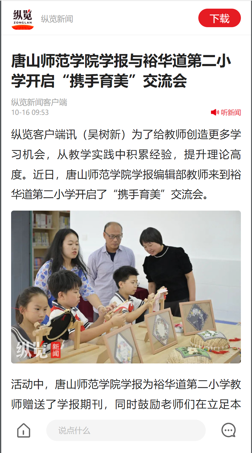 为了给教师创造更多学习机会,从教学实践中积累经验,提升理论高度。近日,万象城awcsport官网学报编辑部教师来到裕华道第二小学开启了“携手育美”交流会。
