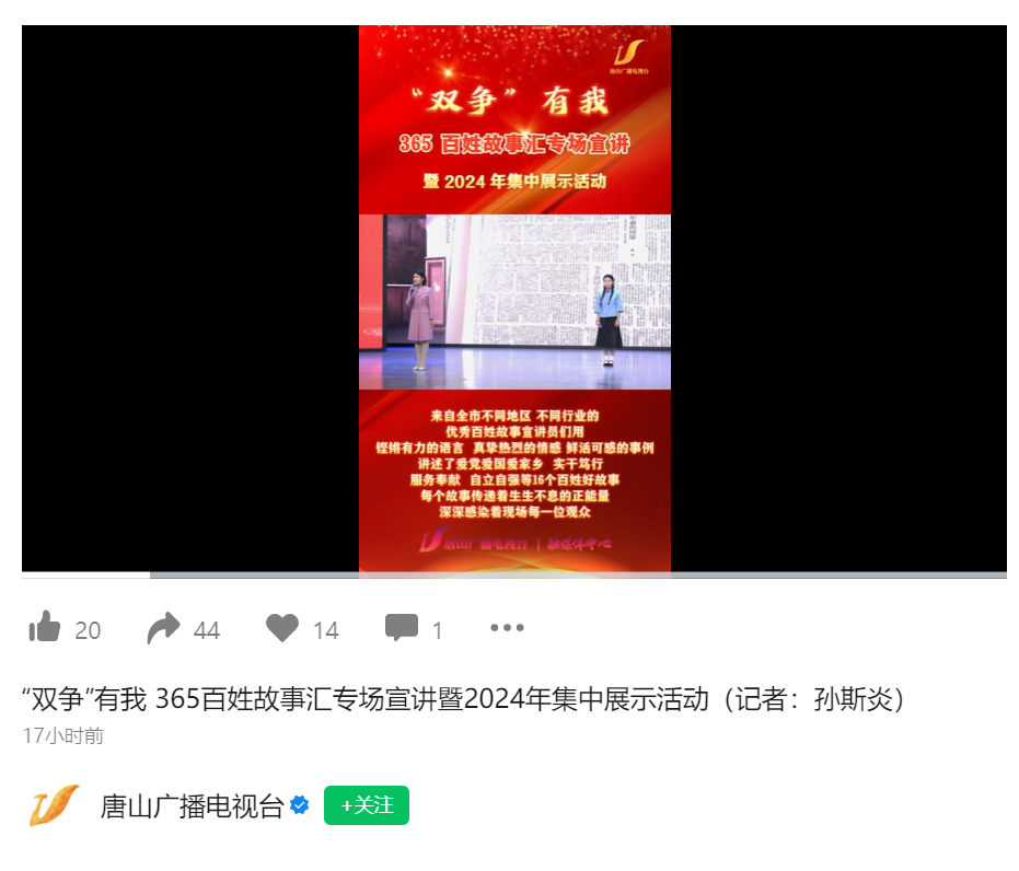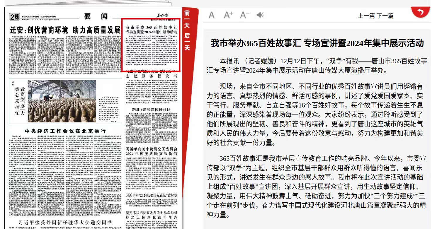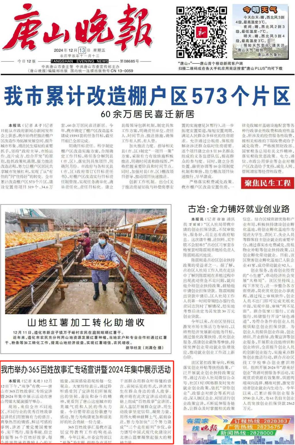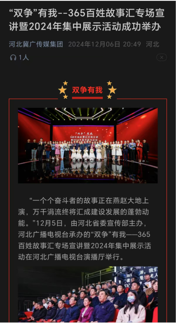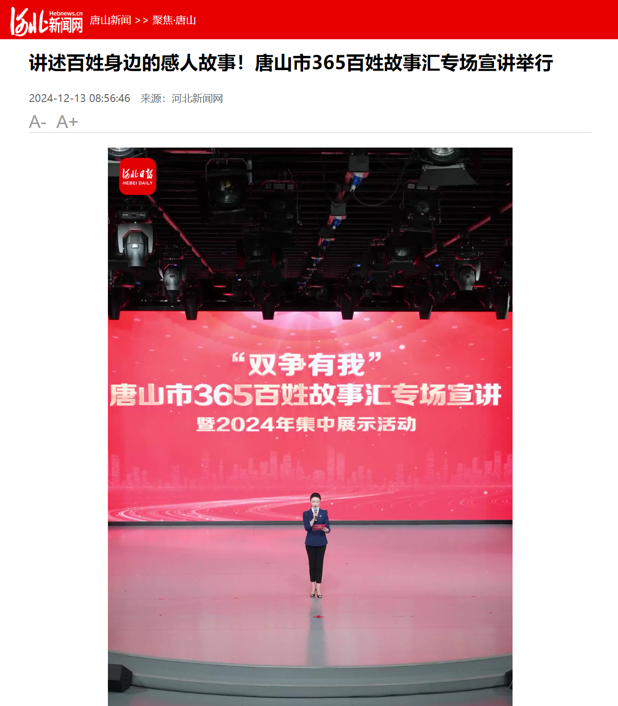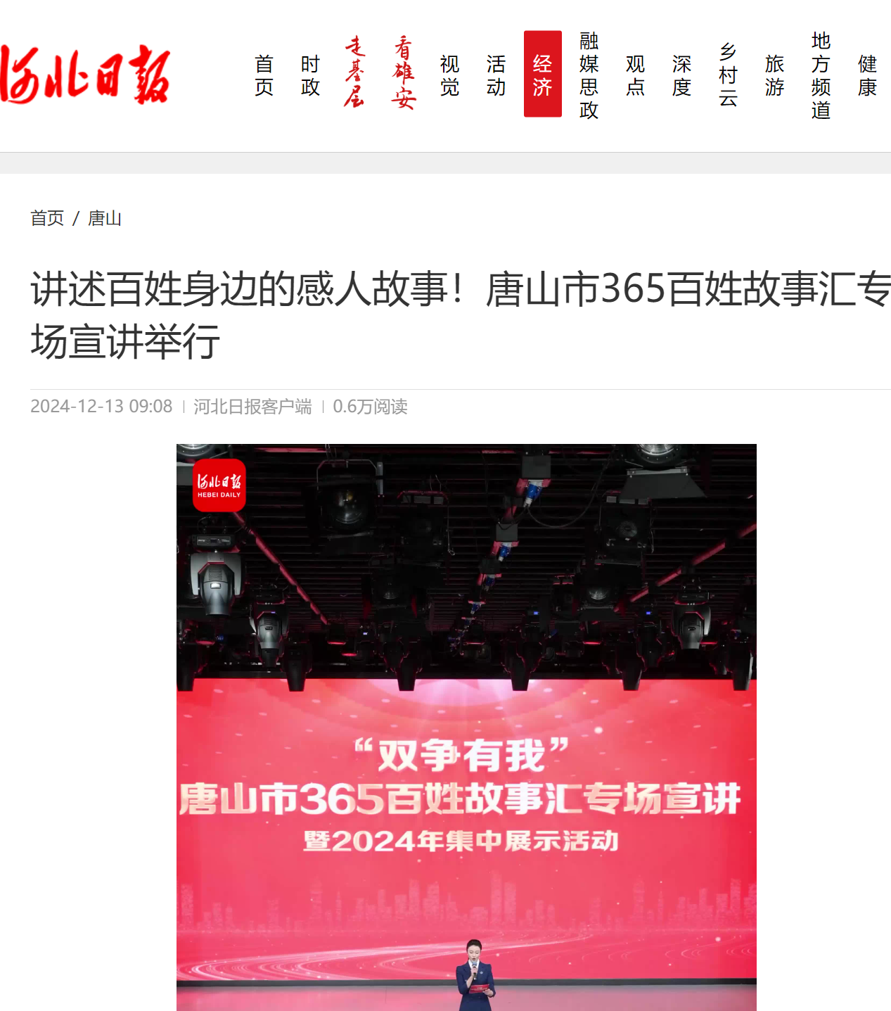 12月12日,“双争”有我——唐山市365百姓故事汇专场宣讲暨2024年集中展示活动在唐山传媒大厦演播厅举办,万象城宣讲员参与此次活动。