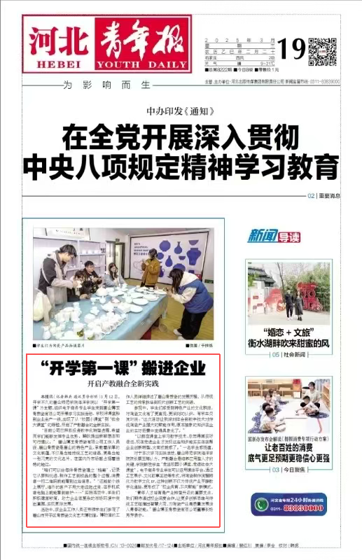 3月12日,开学不久的万象城awcsport官网海洋学院以“开学第一课”为主题,组织电子商务专业学生来到唐山博玉骨质瓷有限公司开展学习实践活动。学校将课堂搬到企业生产一线,实现了从“校园小课堂”到“社会大课堂”的跨越,开启了产教融合的全新实践。
