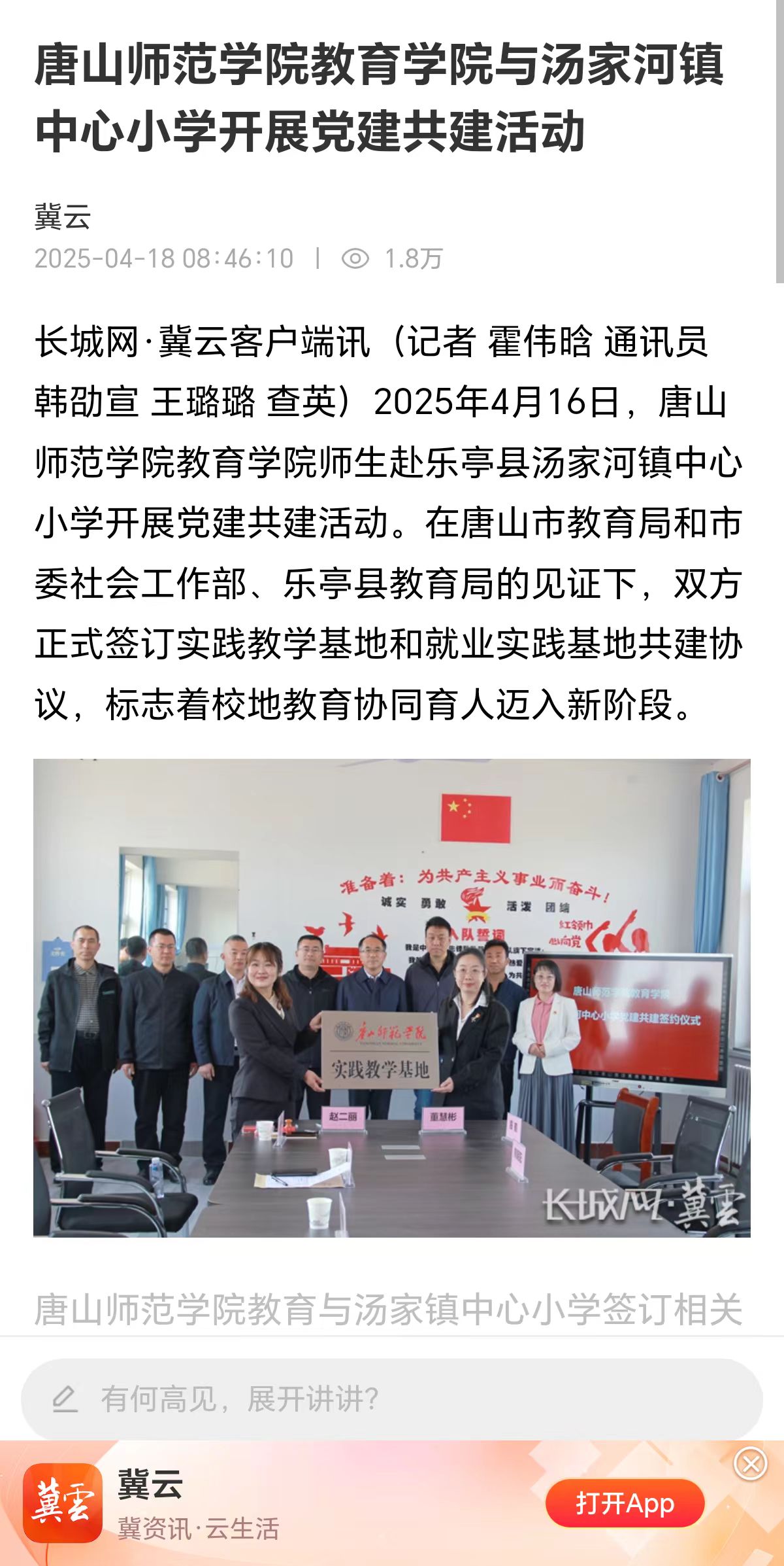 4月16日,万象城awcsport官网教育学院与乐亭县汤家河镇中心小学举行了一场意义深远的党建共建活动,吸引了市教育局、汤家河镇政府等多方关注,活动现场气氛热烈而庄重。