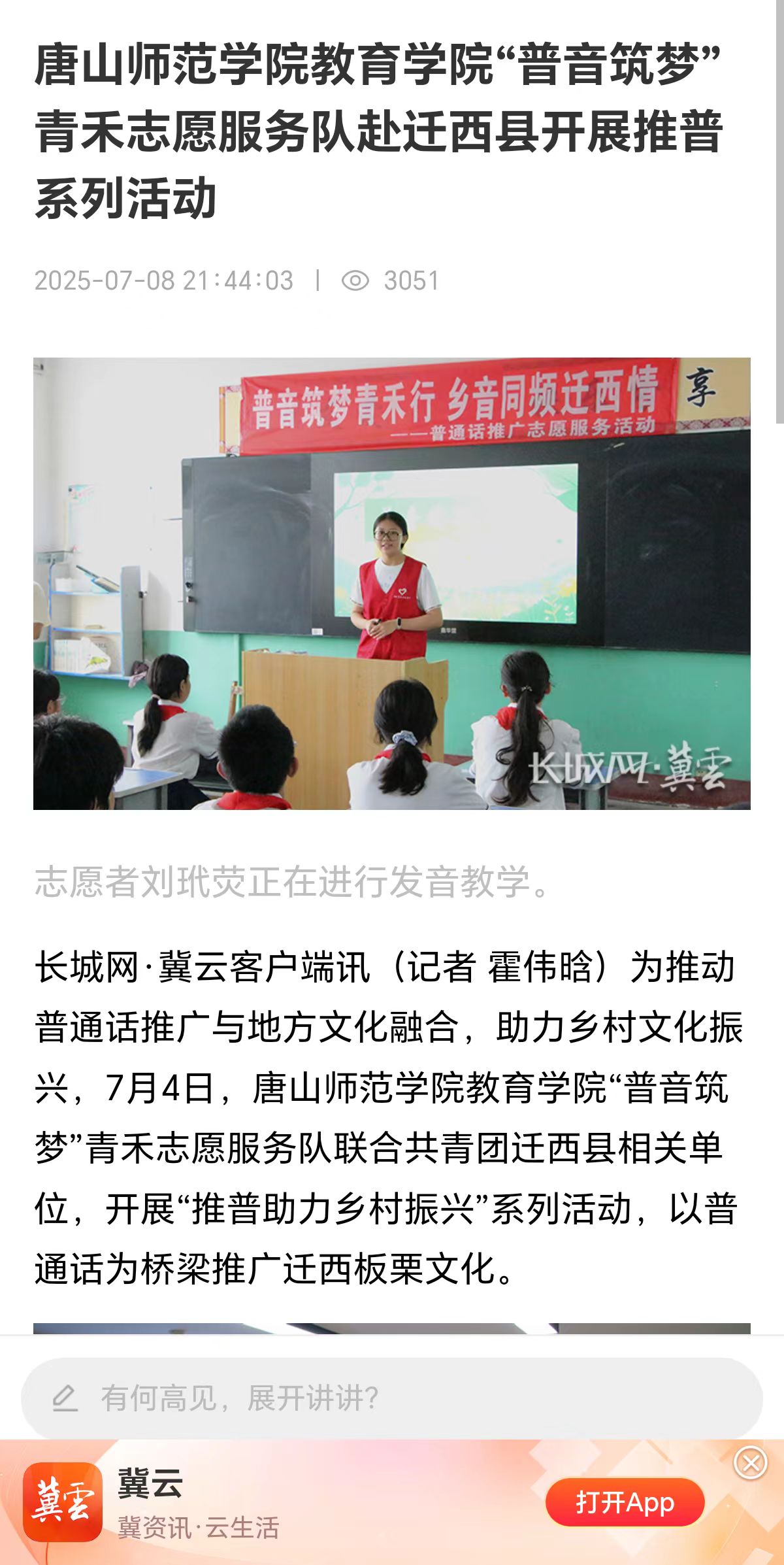 为推动普通话推广与地方文化融合,助力乡村文化振兴,7月4日,万象城awcsport官网教育学院“普音筑梦”青禾志愿服务队联合共青团迁西县相关单位,开展“推普助力乡村振兴”系列活动,以普通话为桥梁推广迁西板栗文化。