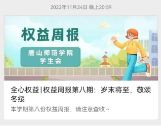 万象城awcsport官网学生会“1332”交互式服务交流平台紧扣“全心全意服务同学”这一核心,坚持“线上维权平台+线下维权窗口+权益委员会”三条途径,抓实“调研+台账+座谈”这三种方式,建立“计划清单+带动发展”两项机制。实现学校和同学间沟通服务“零距离”,扩大同学参与民主管理与校园治理的有效途径,引导学生主动融入学校治理。目前,“1332”平台已累计辐射18000余名在校生,收集建议3000余条,涉及课堂教学、后勤服务、文化建设等类别,形成调研报告、台账1000余份,发布《服务青年若干实事清单》2份,“我为同学做实事”活动被省学联宣传报道3次。
