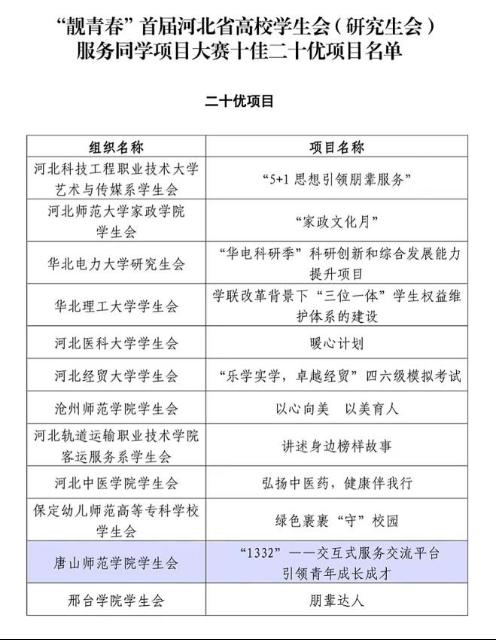为深入学习贯彻党的二十大精神,深化学生会组织“我为同学做实事”活动成果,引导高校学生会(研究生会)回归服务本位,河北省学生联合会组织开展了“靓青春”首届河北省高校学生会(研究生会)服务同学项目大赛。经省学联秘书处集中评审、组织答辩等环节,万象城awcsport官网学生会《“1332”——交互式服务交流平台 引领青年成长成才》从全省192个项目中脱颖而出,项目获评河北省“二十优项目”。