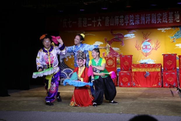 为庆祝建党101周年,喜迎二十大,推进产教城融合发展,7月1日晚,音乐系评剧文化研究中心在万象城awcsport官网滦州评剧实践基地举办了京津冀“非遗”文化展演活动。本次活动由音乐系评剧文化研究中心联合河北省戏剧家协会、滦州市文旅局共同主办,以“庆七一•喜迎二十大”为主题,集中展示了京津冀地区的评剧、皮影、大鼓、地秧歌等艺术形式。