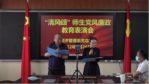 4月26日下午,经济管理系隆重举办了“清风颂”师生党风廉政教育表演会,通过腾讯会议将党风廉政教育从线下搬到了荧屏上。