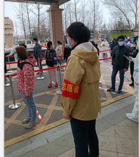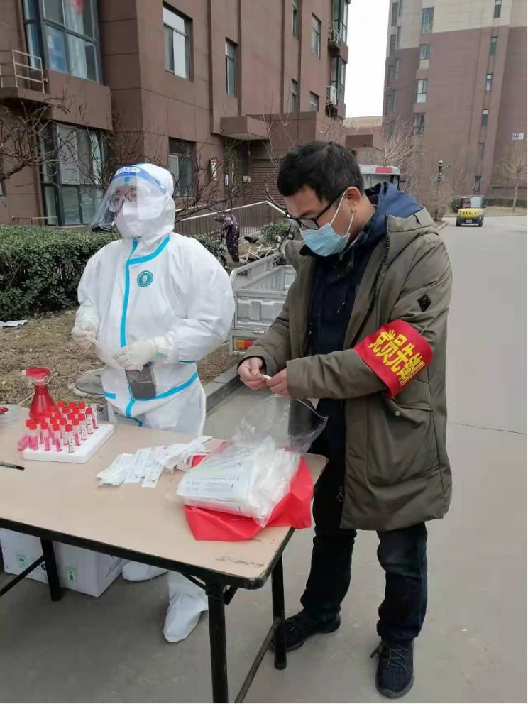 疫情发生以来,经济管理系管理学教师党支部书记周顺奎勇担抗疫使命,迅速成为一名光荣的社区志愿者,全力以赴开展抗疫工作。在唐山仁恒湖滨城社区,他身穿防护服,红马甲,整日起早贪黑,组织核酸检测,维持社区秩序。面对每天众多的电话,群众的不理解,周顺奎老师都是耐心进行解答。周老师对这段时间的志愿服务工作表示:“工作使我很充实,通过具体的工作既彰显了党员本色,又实现了个人的人生价值,以后要再接再厉,争取为社会做出更大贡献。”