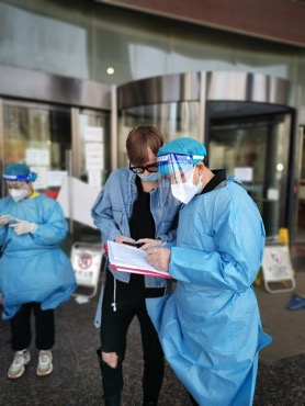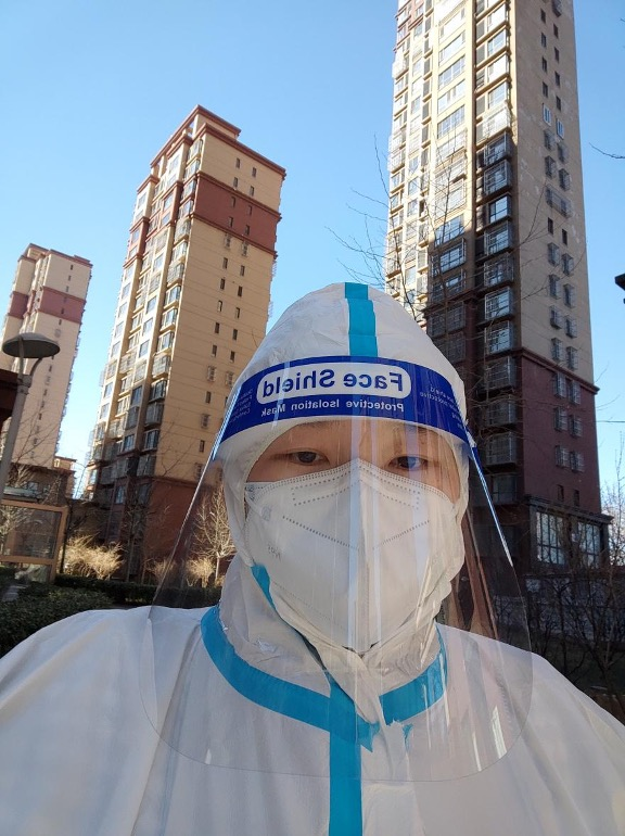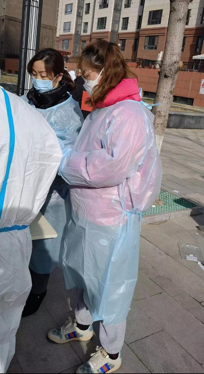 “第一次穿上防护服的我,心里也是有些紧张的,但是看到义无反顾的医务人员,我变得坚定且充满力量。虽然防护服有些闷热,双层的口罩让呼吸不那么顺畅,双层的手套勒的手指微微发麻,但当我看到敲开的门里一个个隔着口罩的微笑,感受到居民的积极配合与理解时,内心被温暖和感动填满了。”李慧笑着说。