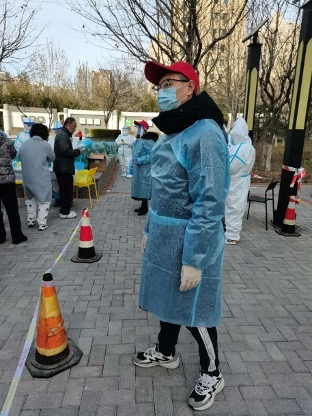 在宋泽成老师教学时,爱人就去接替他战斗在抗疫一线,他们并肩战斗,每天保证至少一人在岗。“我和我爱人是志愿者中年龄最大的,都已年近六十,每天的核酸检测工作虽然累得腰酸腿疼,但是我们在十二轮的核酸检测工作中一直坚守在抗疫一线。”宋泽成表示。