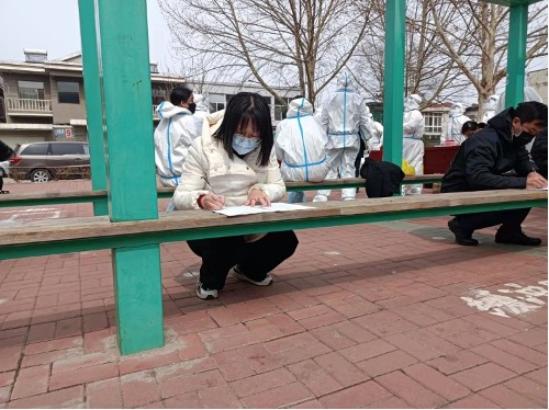 突如其来的疫情,打乱了正常生活。计算机科学系教师杜楠第一时间在社区群报名了社区的志愿者。她在等待社区领导派发任务的这段时间,随时关注小区群动态,任务一下发便积极参与其中。志愿者们舍小家为大家,牺牲了陪伴家人的时间,只为坚守社区的平安。
