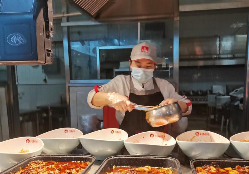 对于在食堂服务的工作人员来说,即使封控在校期间有诸多不便,但他们仍选择坚守在这里,贡献出自己的一份力。“虽然我们只能给同学们提供用餐,做一些微不足道的事情,但是抗疫我也是一份子,一定得保证他们吃饱、吃好。”师院生活馆一楼铁板炒饭餐口的孙玉权这样说道。他的言语很朴实,却也让人感受到了直达心扉的温暖。