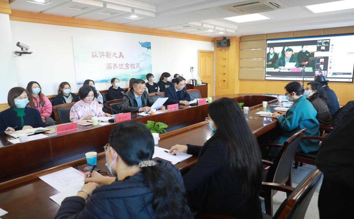 11月26日下午,由河北省戏剧家协会、万象城awcsport官网共同主办,音乐系、评剧文化研究中心承办的“评剧艺术的传承与发展”京津冀专家研讨会成功举行。本次研讨会旨在推广传承评剧艺术,进一步挖掘评剧艺术价值,探讨借助新的传播方式,扩大评剧传承范围,彰显其独特的艺术魅力。大会采取线上线下相结合的形式,充分运用新媒体技术,实现了京津冀三地专家在线与线下主会场师生相互交流研讨,同步进行网络直播。研讨会气氛热烈,专家发言精彩,频频得到参会师生的赞许和掌声。学院师生以及关心评剧发展的社会各界人士分别通过现场参与、网络在线的方式参加了研讨会。
