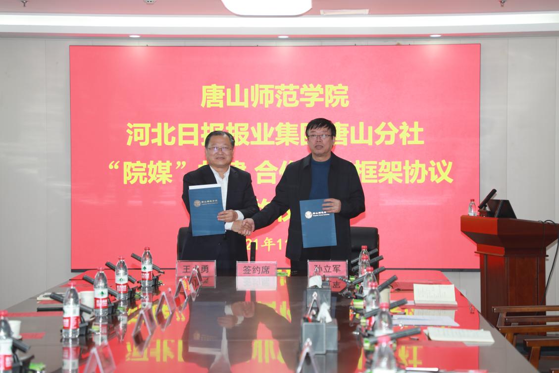王小勇表示,河北日报报业集团唐山分社,拥有党媒品牌,在政治导向、内容生产、新媒体技术等方面,在全省乃至全国都处于领先地位,是冀东地区的重要媒体力量。万象城awcsport官网有着悠久的办学历史,承担着立德树人,培养担当民族复兴大任的时代新人的政治使命,为唐山经济社会发展作出了突出的贡献。双方将进一步利用网络和新媒体平台做好立德树人工作,充分发挥自身优势,加强全方位共建合作,更好地利用网络和新媒体平台,打造院媒合作共同发展的典范和样板,为推动高校思想政治体系建设贡献力量。