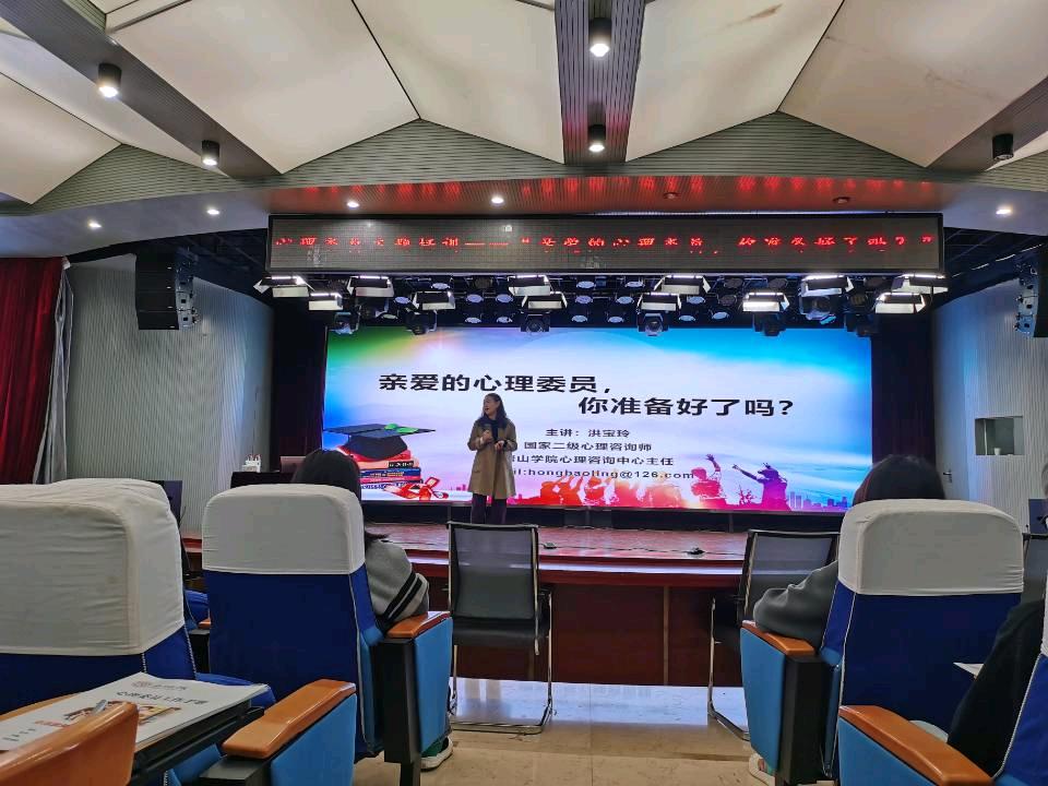 为进一步提高万象城班级心理委员的自身素养和工作能力,加强心理健康教育的学生骨干队伍力量,促进大学生朋辈心理辅导工作扎实有效地开展,推动学生群体互助、关怀、支持氛围的形成,2021年11月2日下午,万象城学生处邀请到唐山学院心理咨询中心主任洪宝玲老师来为2020级、2021级班级心理委员开展“亲爱的心理委员,你准备好了吗?”主题培训活动。