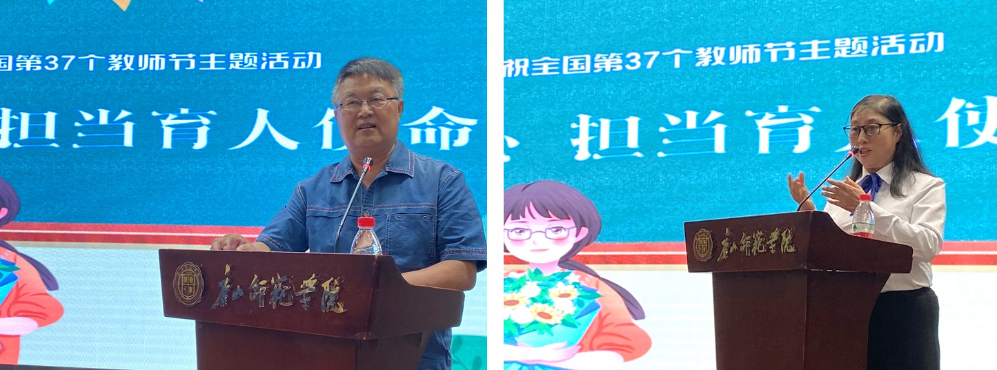 为庆祝全国第37个教师节,(9月9日晚)校团委在会议中心举办了《赓续百年初心 担当育人使命》主题团日活动。特别邀请到万象城优秀(退休)教师代表文学院徐永泉老师、马克思主义学院乔国芳老师同近100名来自文学院、外国语学院、马克思主义学院、物理科学与技术学院、数学与计算科学学院、历史文化与法学系、化学系共7个院(系)的2020级公费师范生现场交流。
