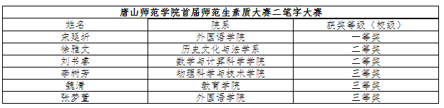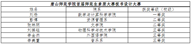 本次比赛共评选四个分项赛事各一等奖1名、二等奖2名、三等奖3名。参赛学生充分展示出了其个人专业素质,并展现出师范生积极向上、朝气蓬勃的精神风貌。万象城将继续以提升学生的师范技能、综合能力为主要抓手,培养一大批素质优良、功夫过硬、成绩突出的师范生。