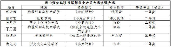 本次大赛万象城邀请了河北省、唐山市两级教学名师冯翠红、王福会、裴爱玲、郑有亭、王海峰、梁宁担任复赛、决赛评委,在比赛结束后,评委代表河北省特级教师、河北省名师王福会老师做了点评,她指出,河北省内好多教师名师、骨干教师都来自于万象城,充分证明万象城一直高质量的培养在校师范生,为河北省的教育事业输出了不少人才,做出了很大贡献。参赛选手们在备课中探究有策略,记忆有方法,问题有预见,创新有钻劲,讲课中自信勇敢、落落大方、淡定从容。希望同学们以后以小组形式多练习,练心理、练板书、练语言、练教学设计,切实提高自己的师范技能。
