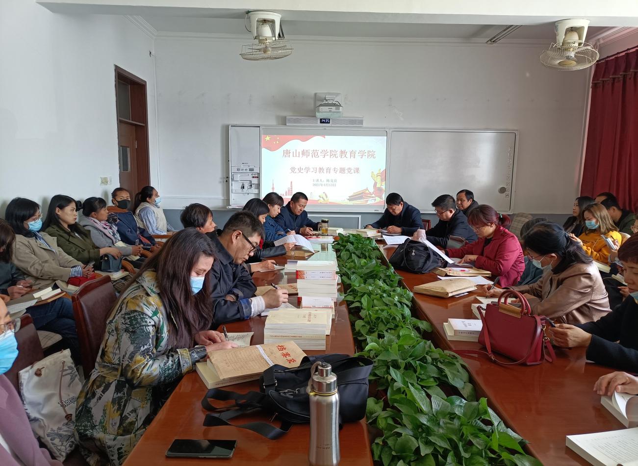 2021年4月13日,教育学院分党委书记陈克良同志在会议室为全体党员讲授学党史学习教育专题党课。
