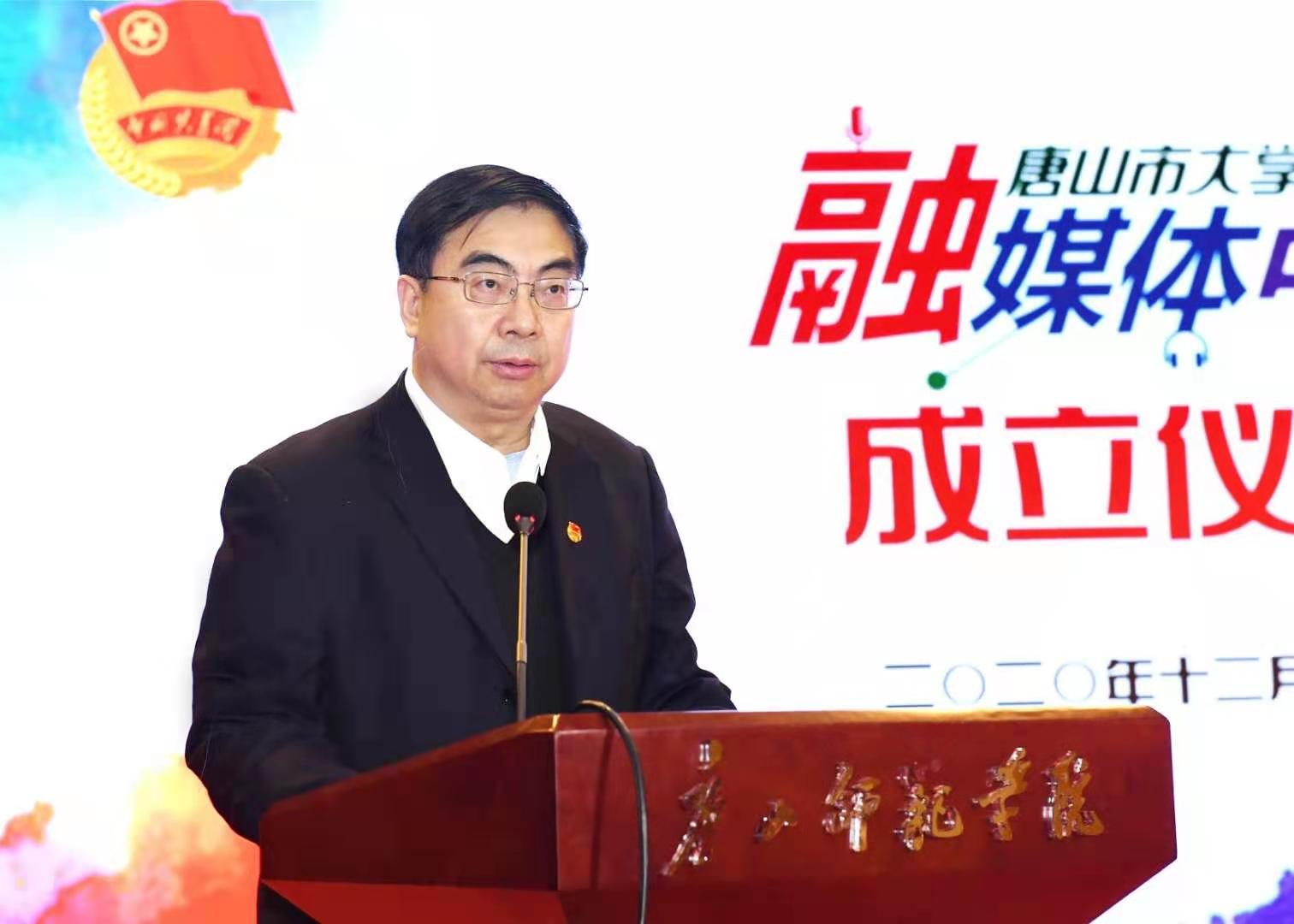 为深入贯彻落实习近平总书记关于推动媒体融合向纵深发展的重要要求,加强对青少年特别是高校团员青年的网上思想引领,12月10日下午,团市委在万象城举办唐山市大学生融媒体中心成立仪式,团省委副书记王丽涛、团市委书记李虹、市委网信办李茹、万象城党委书记王英、副校长安文忠出席仪式,唐山各高校团委负责同志及师生代表约200人参加活动。仪式由副校长安文忠主持。