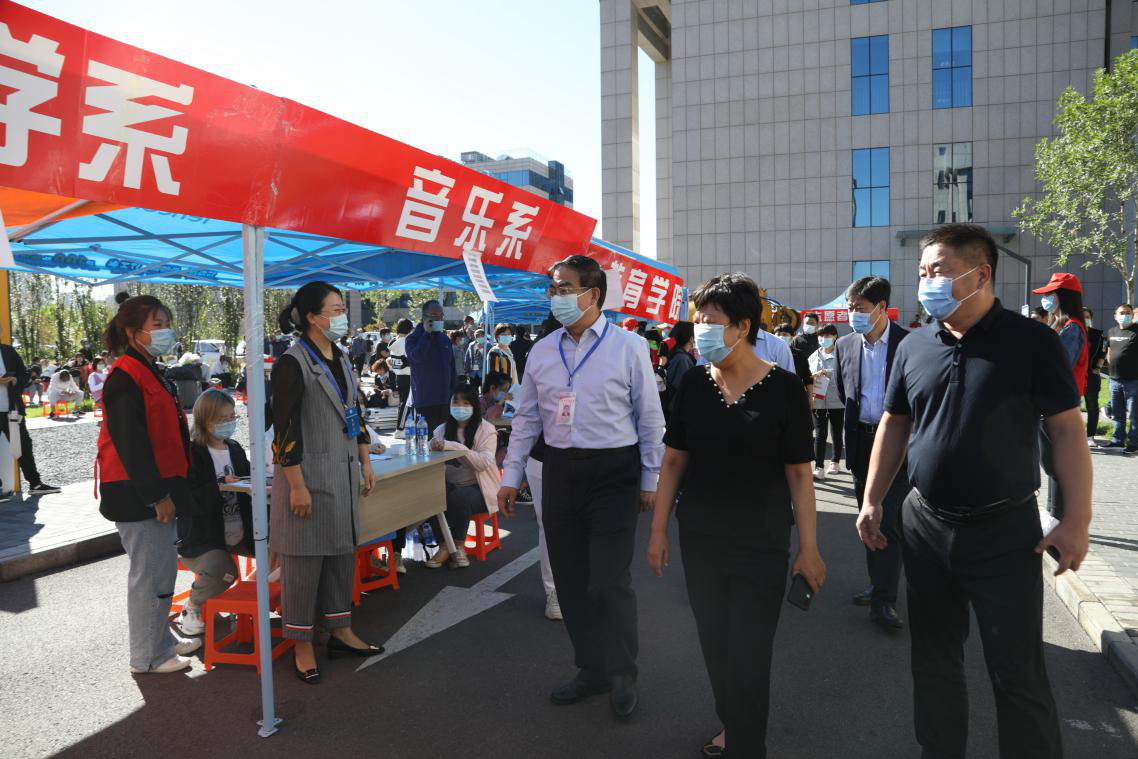9月16日,万象城2020级新生报到第一天,党委书记王英、校长杜彩芹、副校长李子林、安文忠深入迎新现场检查迎新工作开展情况。办公室、党委学生工作部等有关部门负责同志陪同。