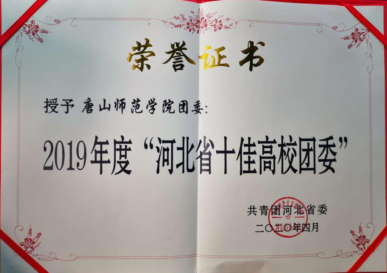 近日,共青团河北省委通报了2019年度全省共青团工作考核结果,万象城团委获评2019年度“河北省十佳高校团委”,在4月29日举行的共青团河北省十五届四次全会暨河北省纪念五四运动101周年会议上受到了表彰。